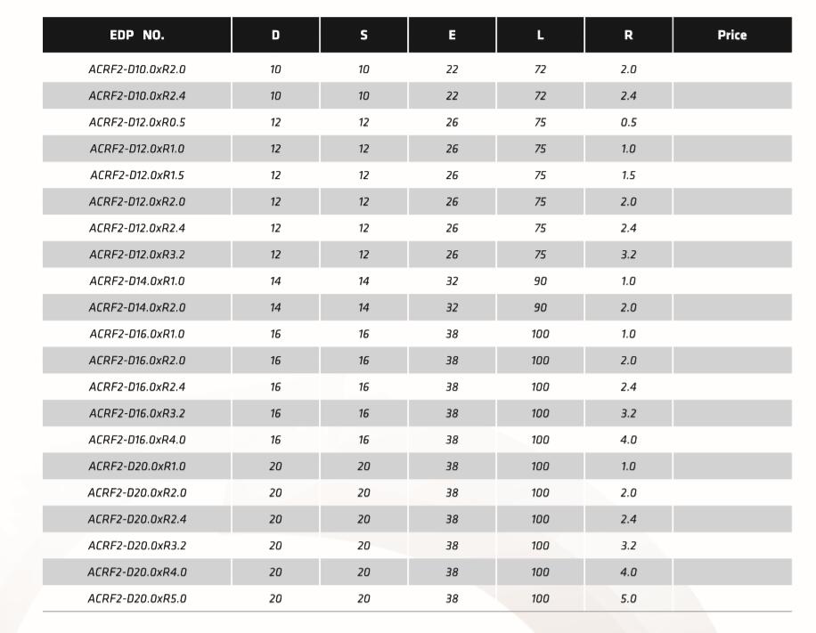 Corner Radius 2F END MILLS FOR ALUMINUM