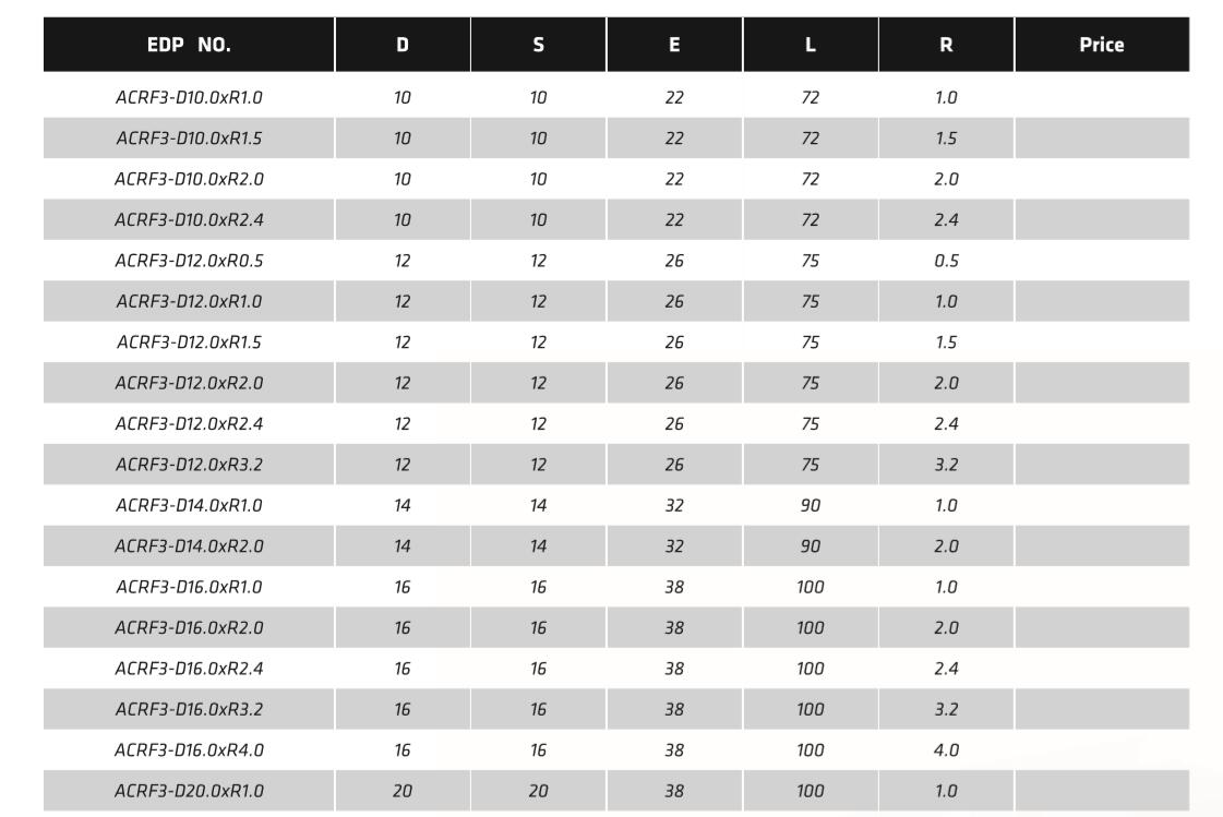 Corner Radius 3F END MILLS FOR ALUMINUM