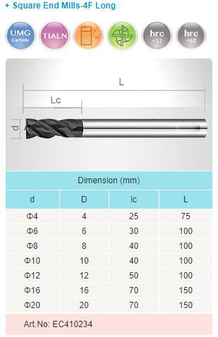 Square 4F Solid Carbide End Mills